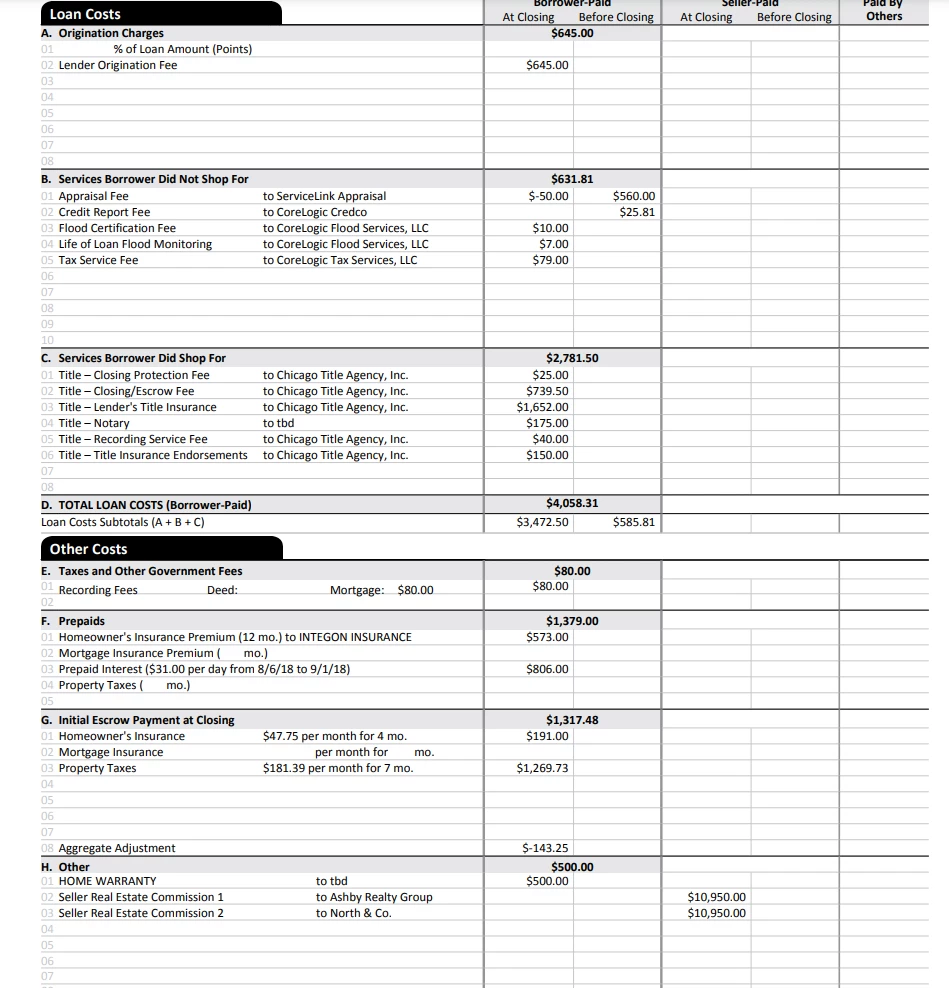 I am adding a first time rental to be categorized as an assest. I have following items as closing cost in addition to the value of the home. What all sections from the below closing disclosoure can I add to the cost basis of my home?