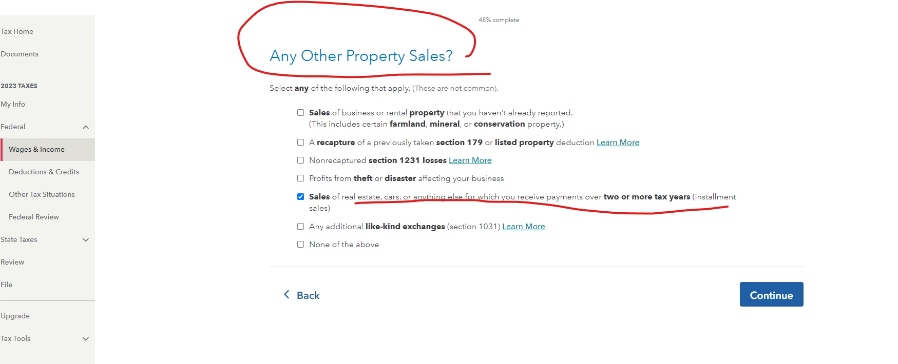 Reporting Property Installment Sales in Turbo Tax 2023 Desktop
