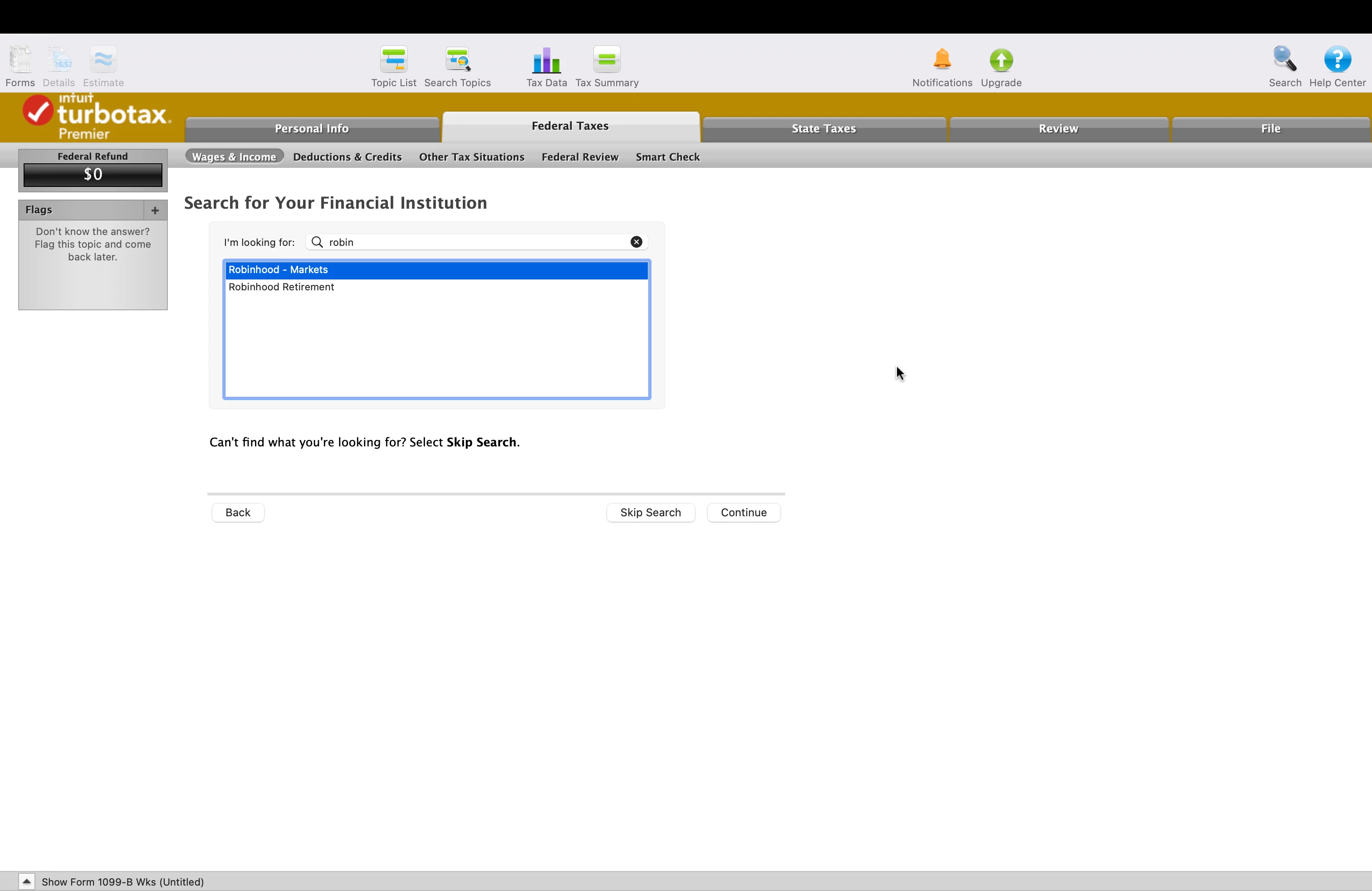 I'm using TY2020 TurboTax Desktop Premier DIY App and I'm trying to enter Investment Sale Info and selected Broker is "Robinhood - Markets" as the Financial Institution. After clicking on "Continue", App suddenly CRASHES without any error message.