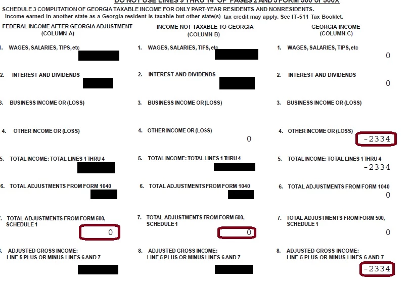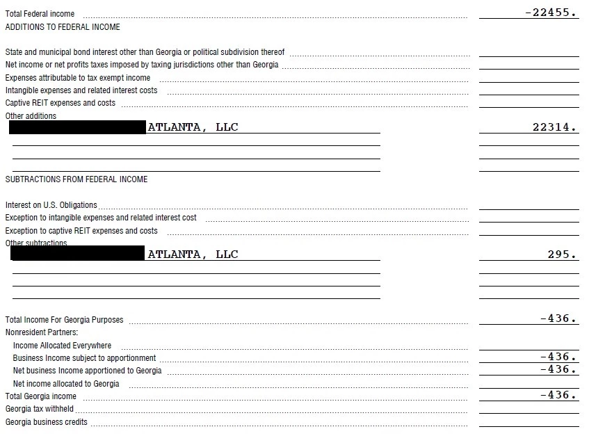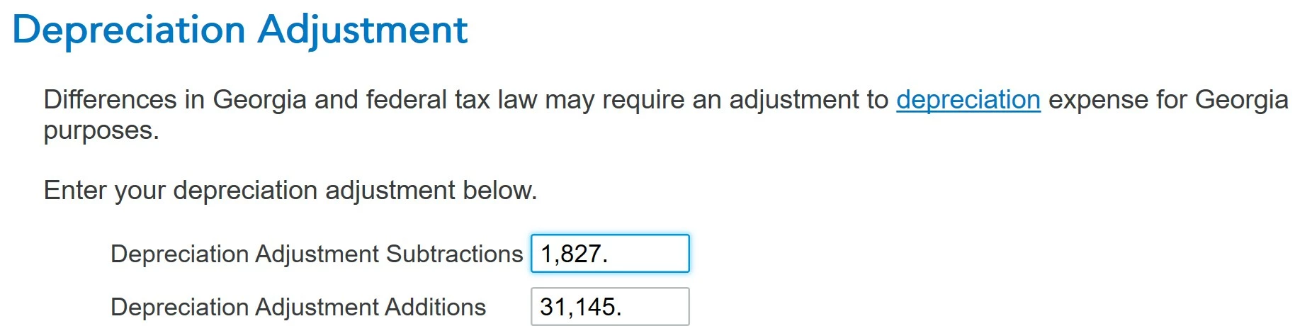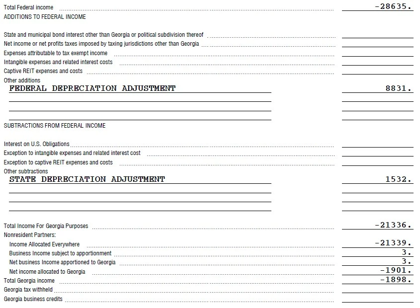 Do we really need to record these depreciation adjustments? I was thinking the adjustments on the K1s are just an FYI. What matters is the last line Total Georgia Income on the K1, which in this case is -436 and -1898 (totals to -2334). I recorded this amount using the form below and it appears in the Georgia Income column above.
