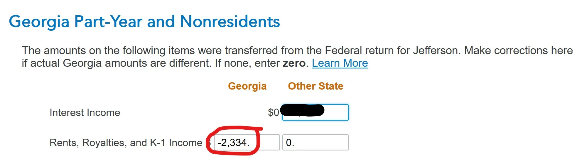 Seeking your help in checking to see if I am entering my Georgia K1 on TurboTax correctly.