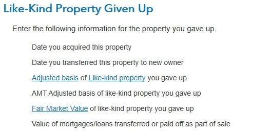 Lastly when I get to the end it tells me the exchange results in a deferred gain. The information states "the deferred gain reduces your basis or the like-kind property you received in the exchange" and should result in smaller future depreciation deductions. Based on that I am assuming somehow I need to incorporate this deferred gain amount into the depreciation component of the new properties when I add them to my rental income section but not sure how to incorporate this amount. Do I just reduce the price of the property?