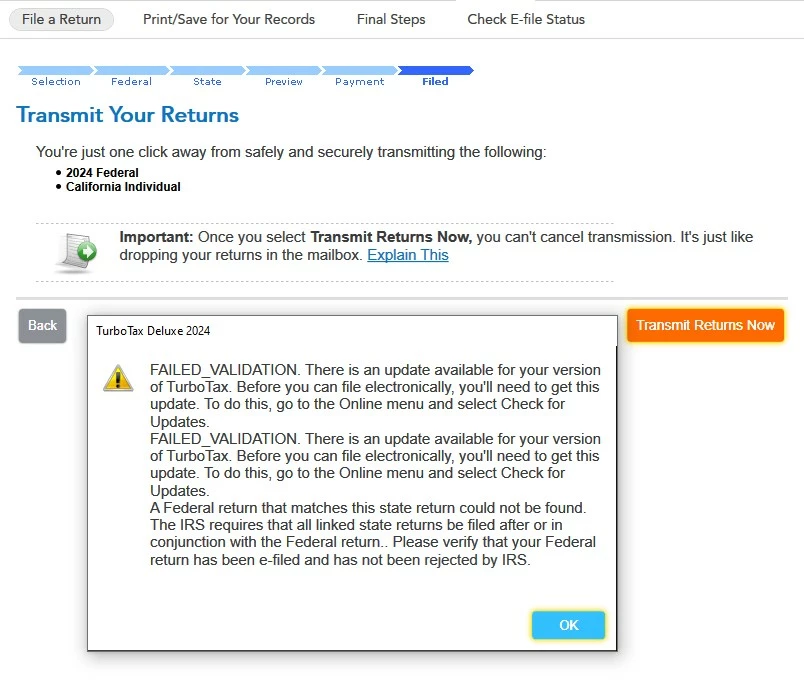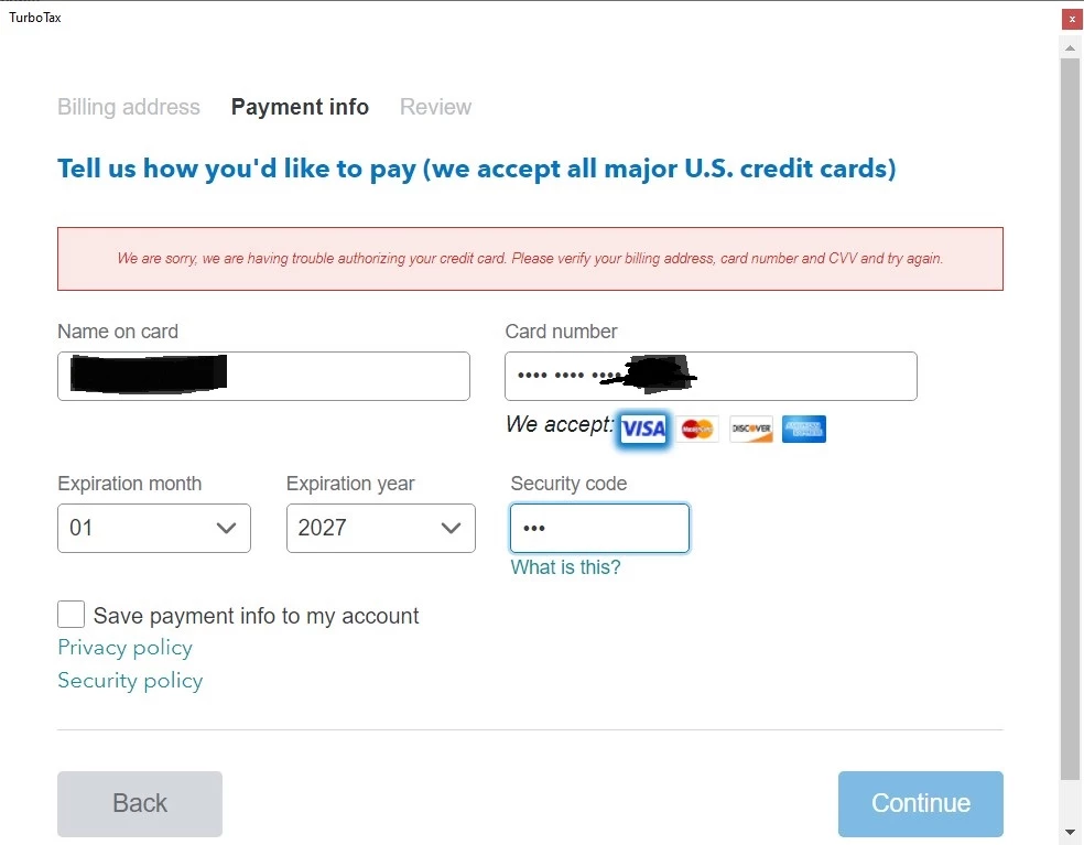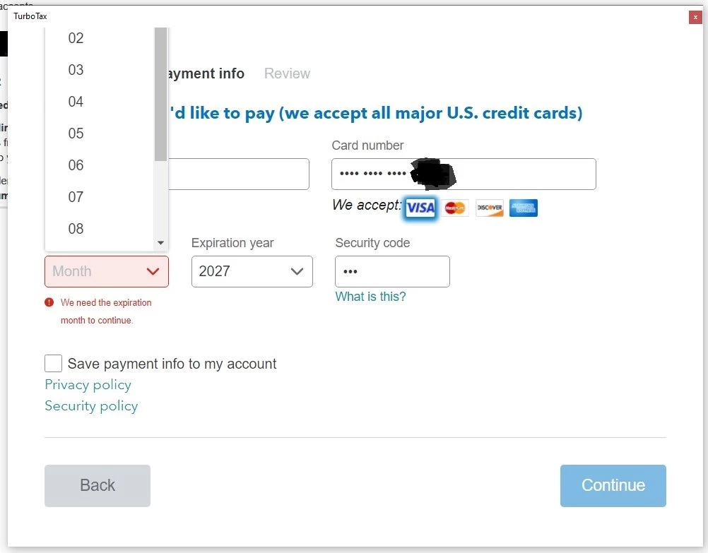 TurboTax Deluxe PC version doesn't allow a January expiration date on a credit card