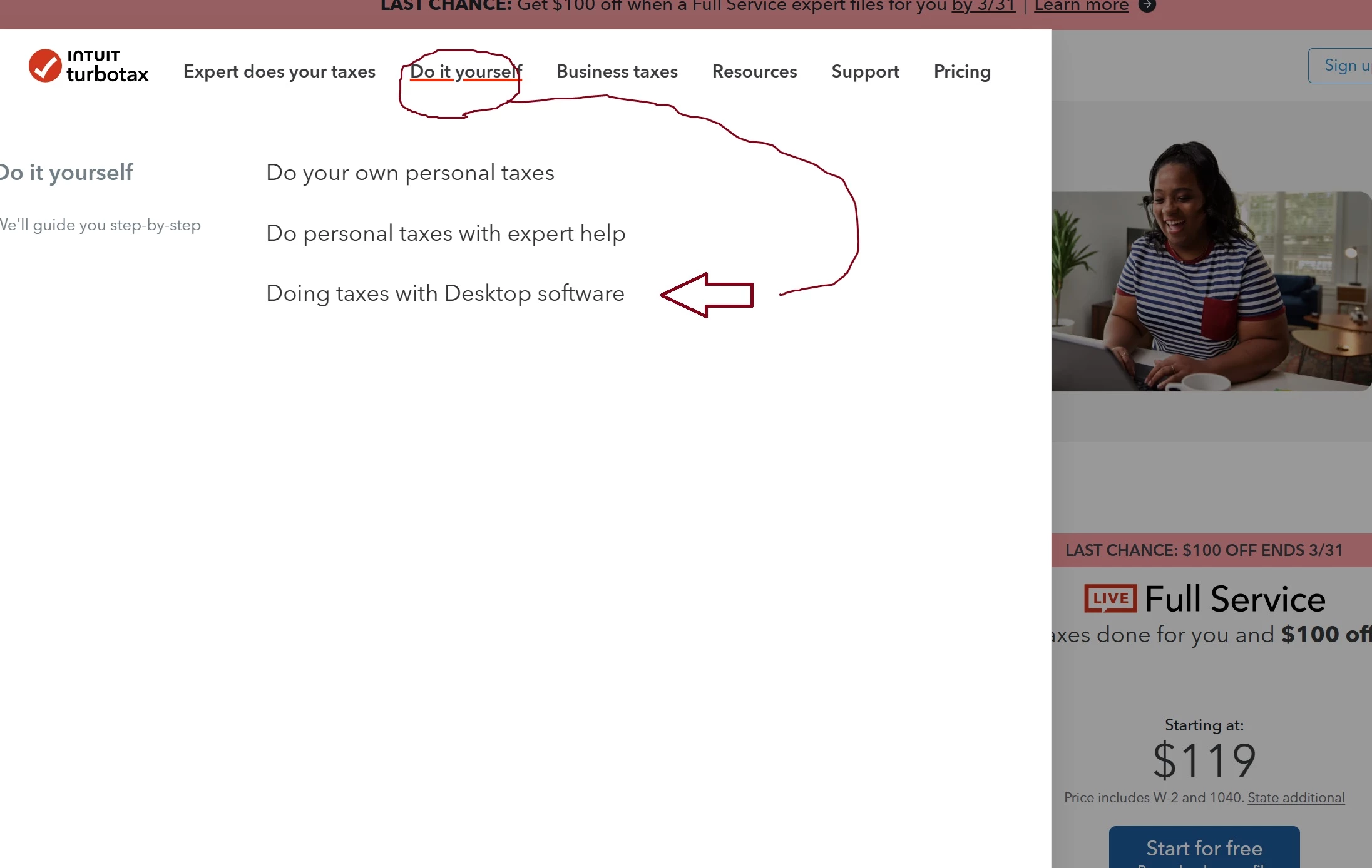 I've always used the desktop version, but thought I would try the online version this year. Started the online process, but soon realized it is terrible. When I log in, it just takes me to "...let's keeping working on your taxes" page. I don't want to keep working on my taxes. I want to go to to the page where I can buy and download TurboTax, but there is no way to get there from the page I am on. I have to literally logout and then I can see the generic landing page. OK, let me buy the desktop version. I pick my product and it asks me to create an account or sign in. I sign in, and the next page that opens is the "let's keep working on your taxes page". Argh!!