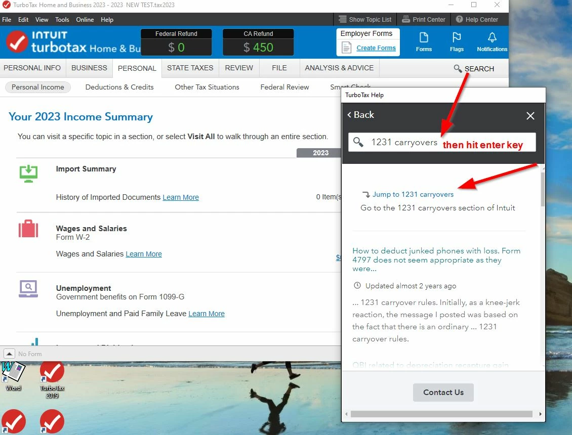Any unrecaptured section 1231 losses in the last 5 years, enter the data by entering 1231 carryovers in the SEARCH FIELD at the top of the screen. Then selec the FIND button.