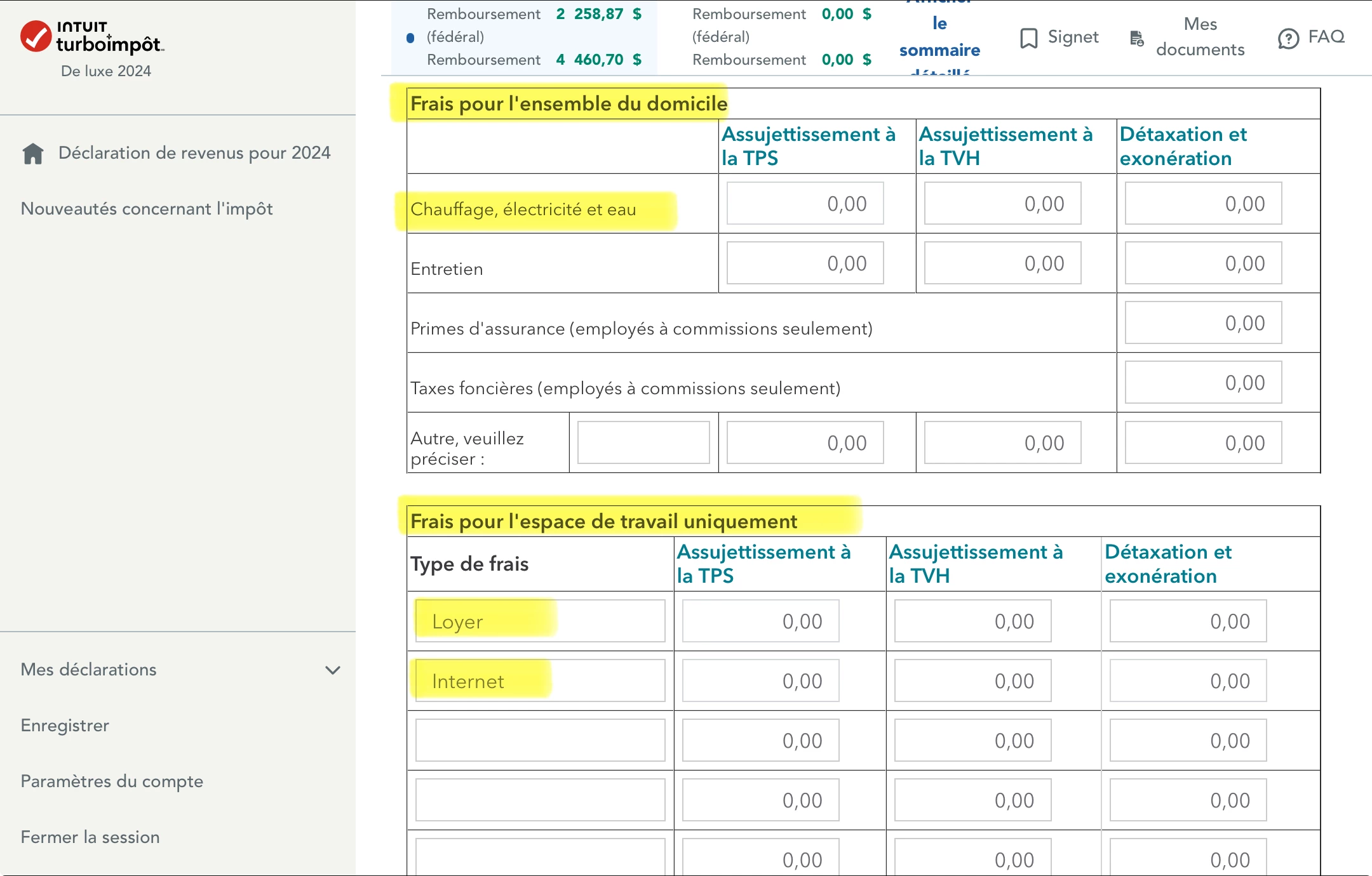 TurboImpôt calculera la partie allouée de votre frais total selon ce que vous aurez indiqué dans la section juste au-dessus sur la superficie utilisés.