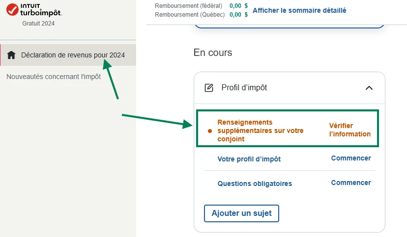 Vous parlez sûrement du message dans TurboImpôt en ligne qui vous demande d'inscrire le revenu de votre conjoint alors que sa déclaration n'a peut-être pas encore été complétée.