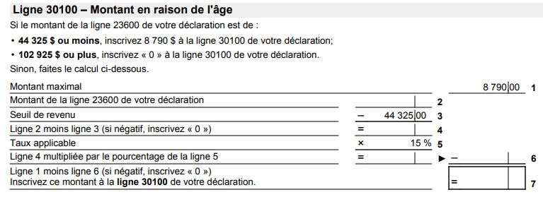 Comment trouver le détail du calcul de la ligne 30100 (Fédérale) du crédit d'impôt "Montant en raison de l'âge?