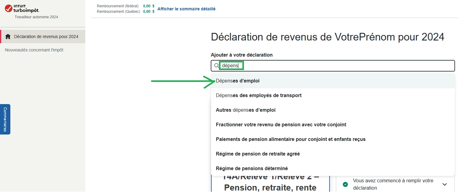 J'essaie de déclarer mes dépenses en tant qu'employé pour l'utilisation d'un bureau à domicile (j'ai le formulaire rempli par mon employeur) mais où dois-je le déclarer ?