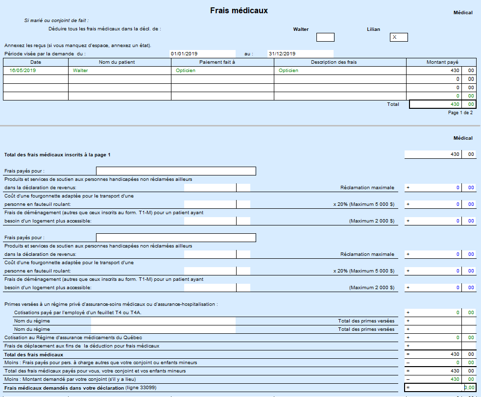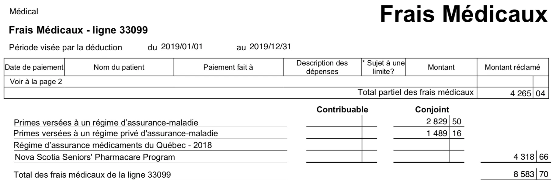 Le montant figurant à la ligne 33099 de votre déclaration Fédéral T1 provient du total de tous vos frais médicaux.