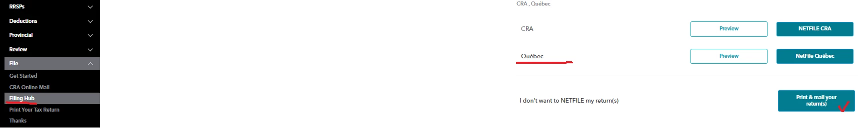 Here are instructions on how to print a copy of your tax return to mail to Revenu Québec: