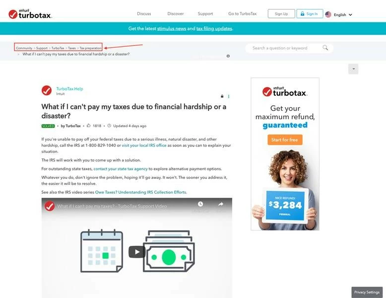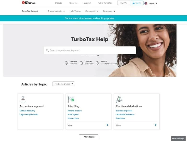 What previously was a landing page for FAQ content is now a dynamic self-help hub with FAQs, community content, and tutorials for TurboTax Online and TurboTax Desktop.