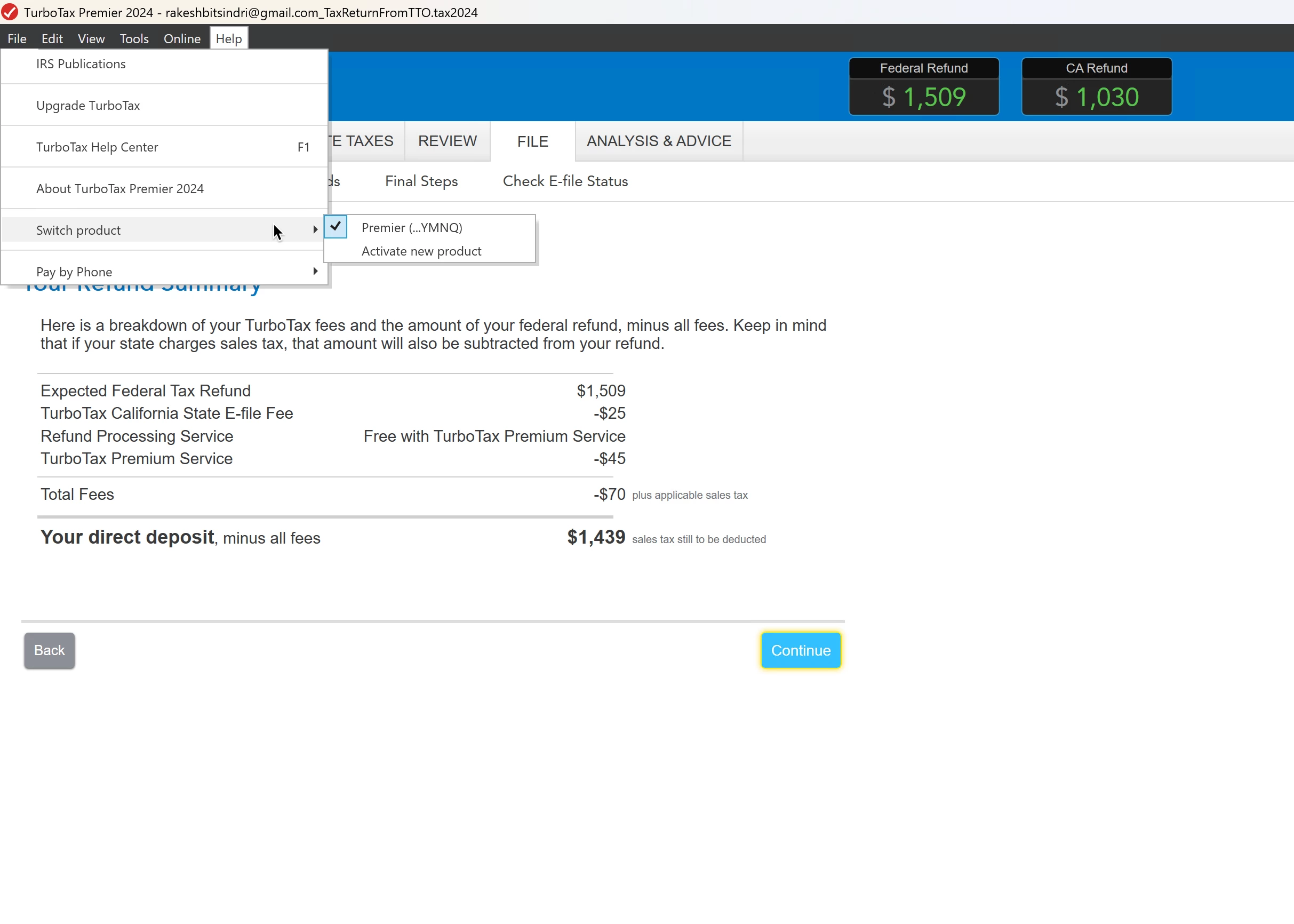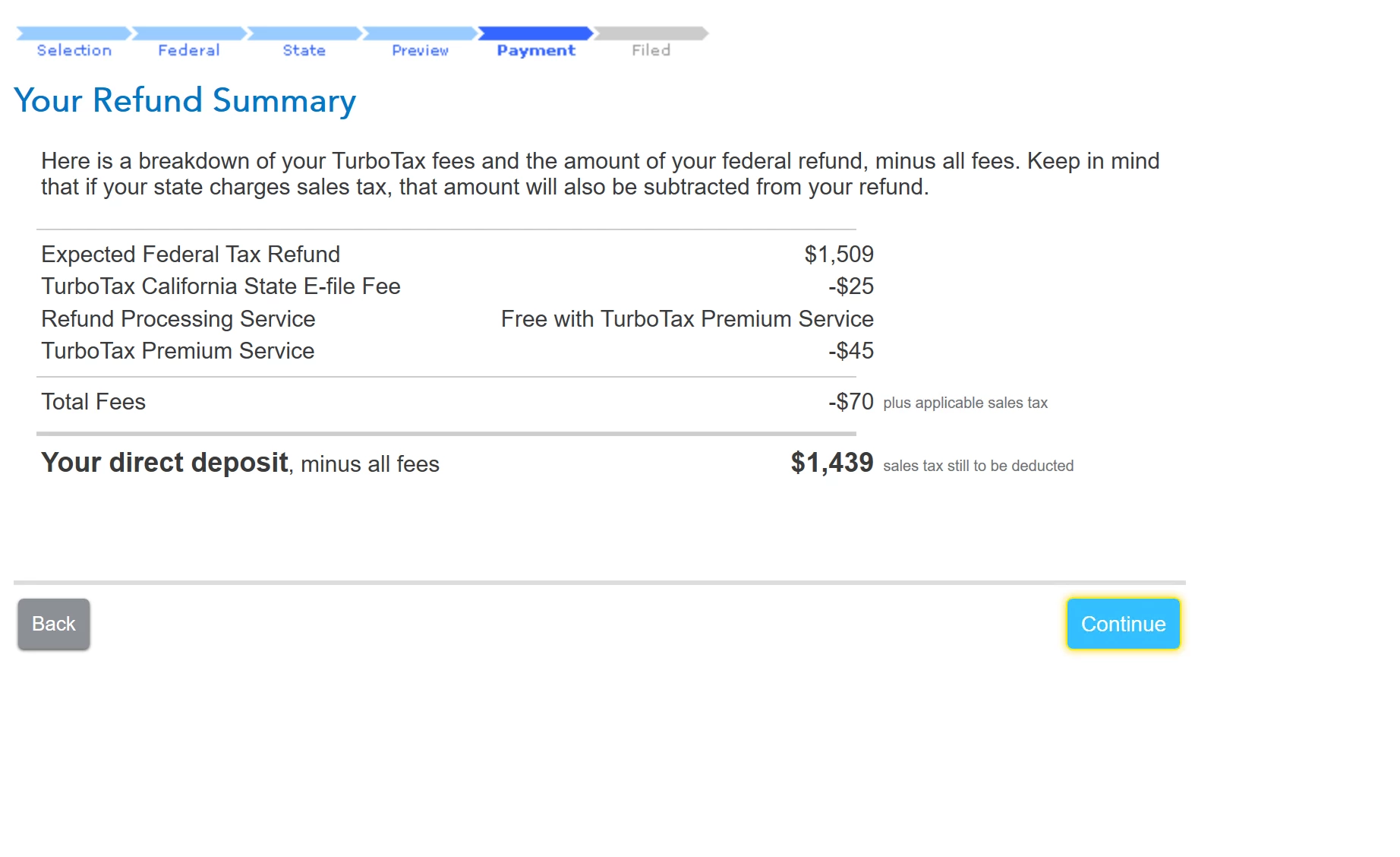 you guys are misleadingly charing 45$ for premium service, which is nothing but auto debit from refunds, i could have easily paid it using credit card and saved 45$ this is absurd. wud love to get this refunded, had to file it in hurry ,I didn't google. Note that i didn't buy neither the live services nor the Audit Defense.