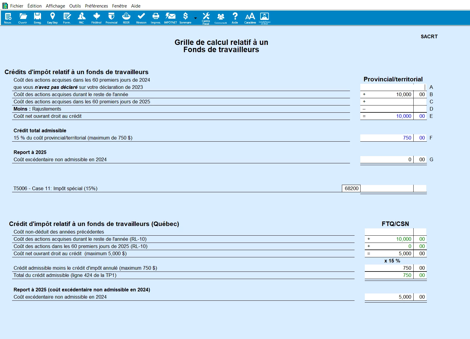 Bonjour, lorsque je remplis la feuille de calcul, le montant excédentaire à 5000$ est reoprté pour la partie provinciale, mais pas pour la partie fédérale. S'agit-il d'un bug?