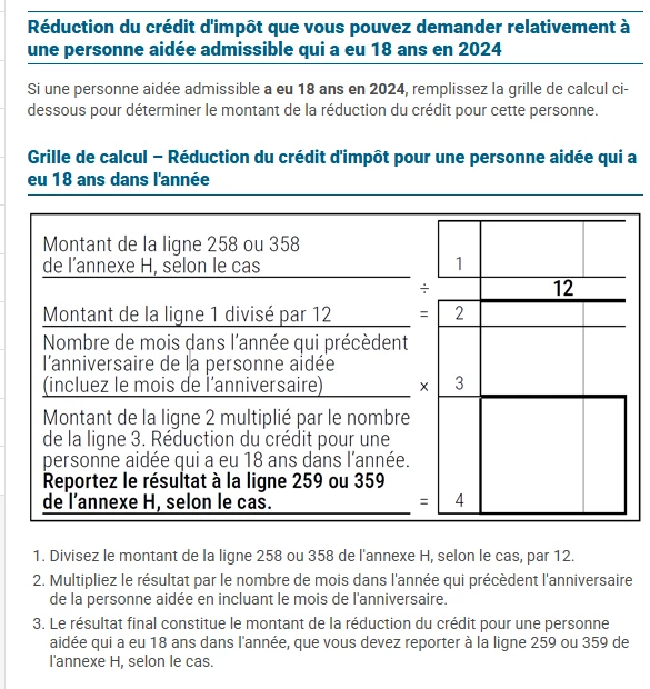 Personne aidante annexe H ligne 260