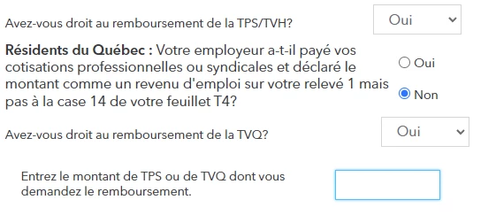 2. Elle a payé à la fois la TPS et la TVQ, mais on me demande d'entrer "le montant de TPS ou de TVQ dont vous demandez le remboursement".  Je fais quoi si ma femme a payé les deux taxes? J'en fais la somme?