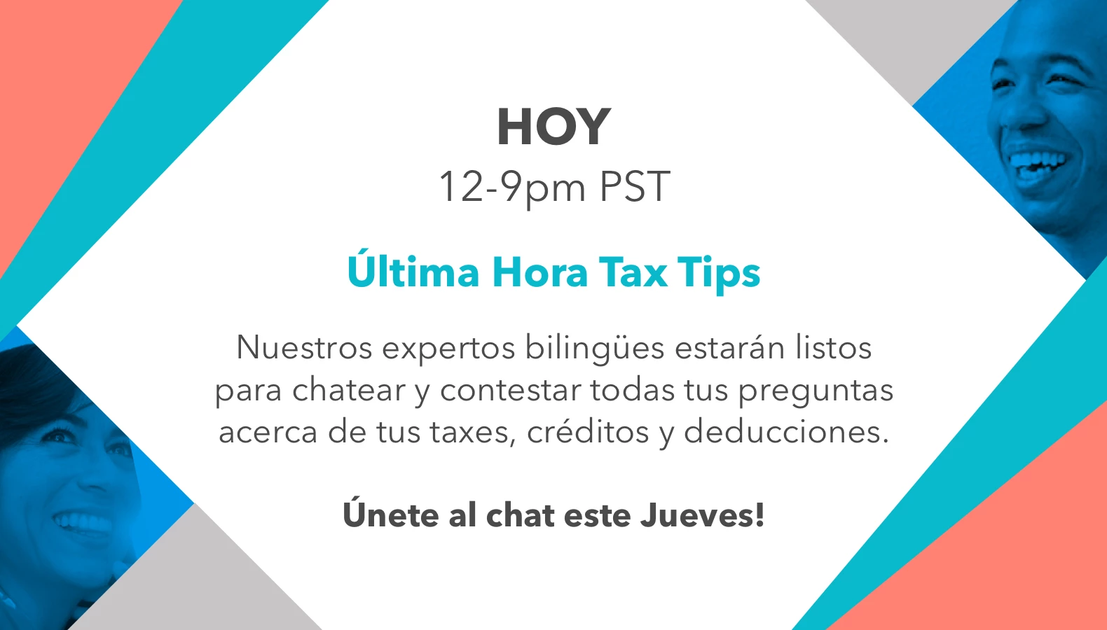 This April 12th from 12pm -9pm PST/ 3pm -12am EST, our tax bilingual experts will be online and ready to tackle your tough questions as you post. There’s no limit to how many questions you ask and conversations you start. Don’t miss this great opportunity!