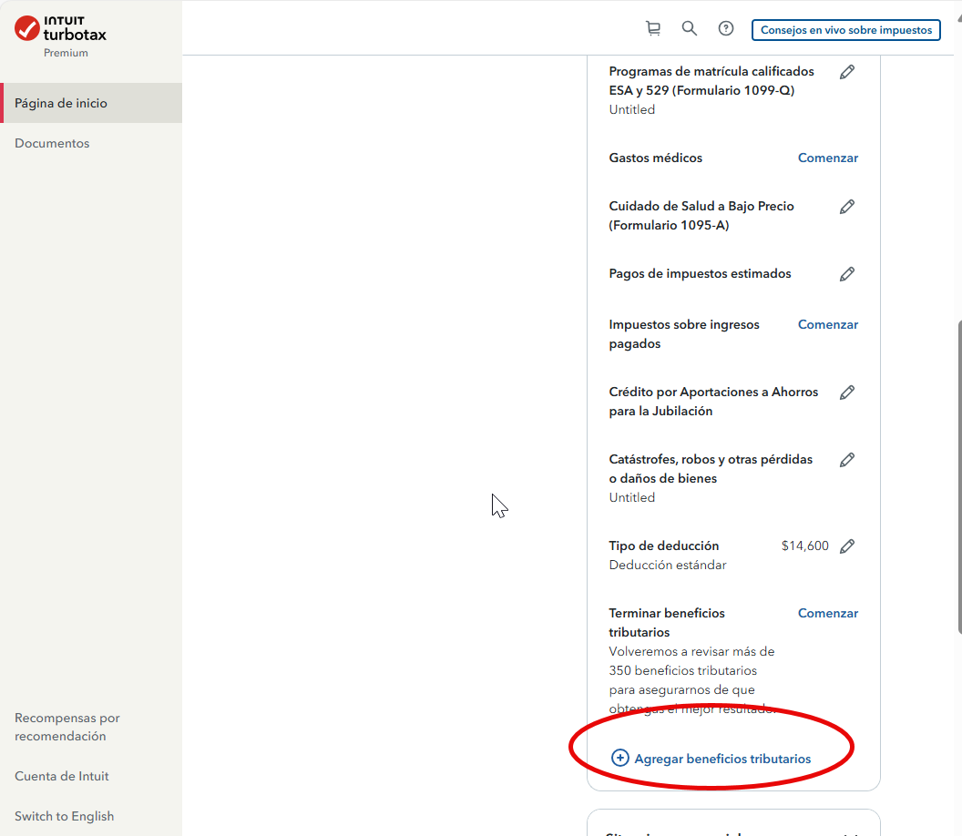 Luego deslize hacia abajo hasta llegar a +Agregar beneficios tributarios