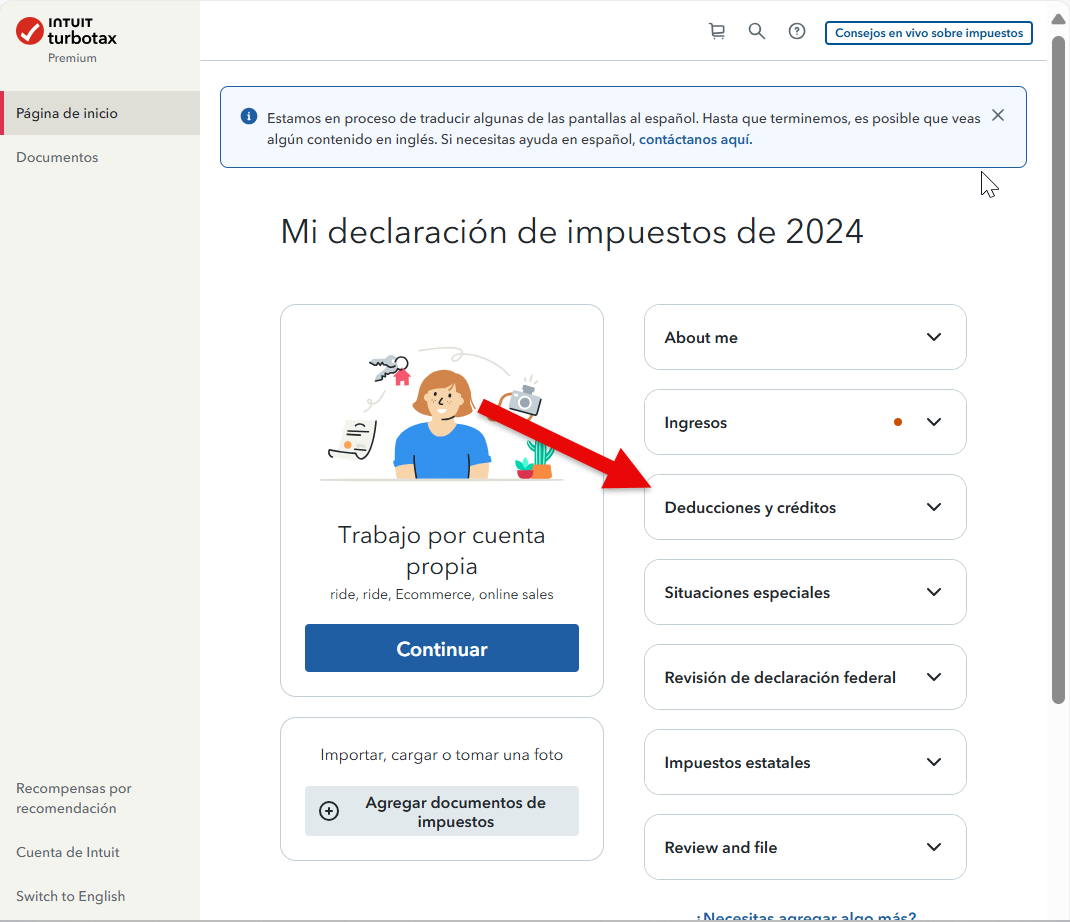 Desde su pagina de inicio localize Deducciones y Creditos