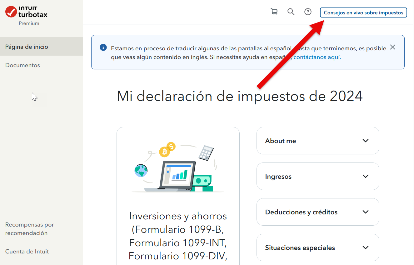 Si necesita que alguien revise sus impuestos por completo solicite ayuda desde su pantalla. Un agente experto en impuestos le puede ayudar a verificar que todo esta correcto. Tambien puede solicitar una revision completa de sus impuestos. Vea la foto de abajo como referencia