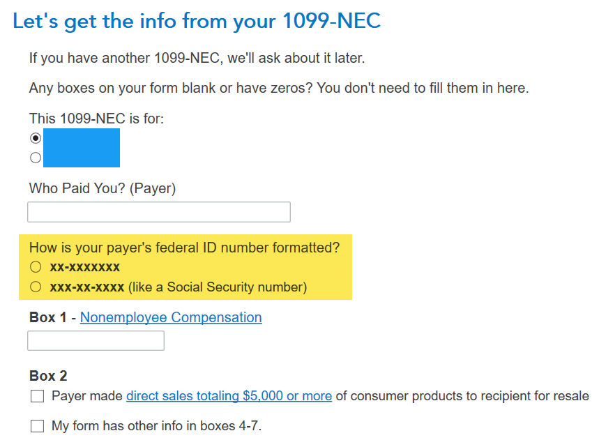 Make sure you are selecting the correct format. There are 2 options. Also make sure you have no extra characters, don't enter the dashes; it should be a 9 digit number. TurboTax will automatically insert the dashes based on your format selection.