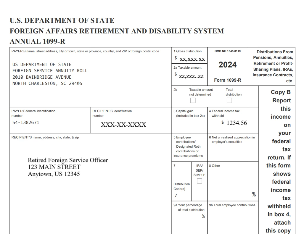 I receive a 1099-R form "U.S. Department of State- Foreign Affairs Retirement and Disability System Annual 1099-R." The problem is that none of the 1099-R form templates in Turbotax match it from box 9 onward. I have additional boxes for Health Benefits and Dental and Vision that aren't able to be inputted. Even more problematic, when I manually input it, Turbotax sees it as a withdraw from an IRA that needs to be taxed as such instead of a monthly pension that I pay income tax on. I've had issues in past years making my 1099-R fit, but this year I can't seem to enter it in a way that the tax is properly calculated. I tried uploading a picture as well, and that didn't solve the problem.