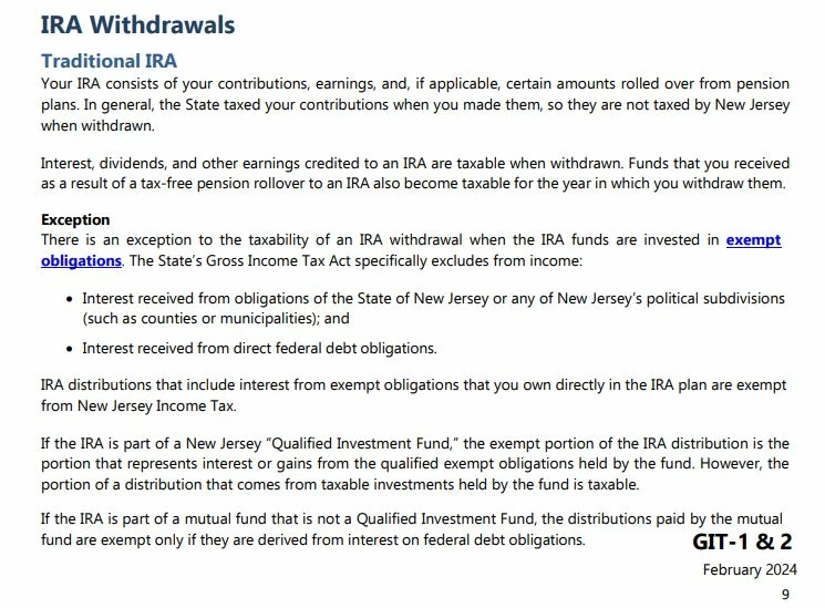 I am referring to a distribution taken from the IRA which includes us government obligation dividends.