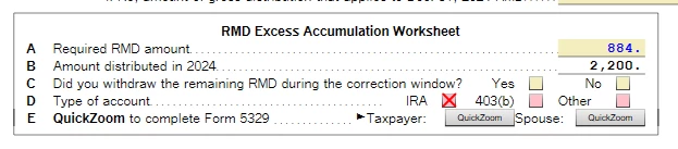 ERROR On 1099-R RMD Excess Accumulation Worksheet - Type of Account