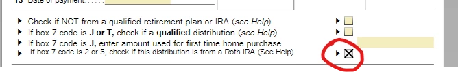 Box 7 Code is "T" and the IRA/SEP/Simple is not checked.