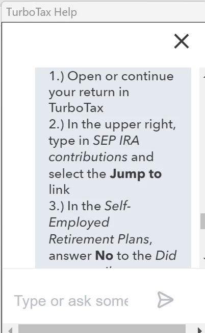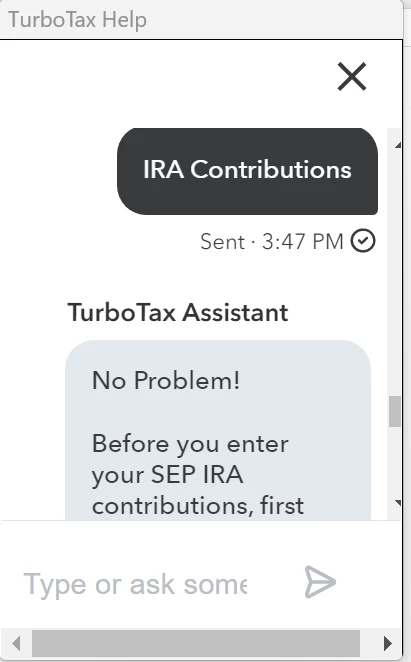 I do not see any JUMP TO link.  When I search for IRA Contributions, the Digital Assistance only returns SEP IRA information.