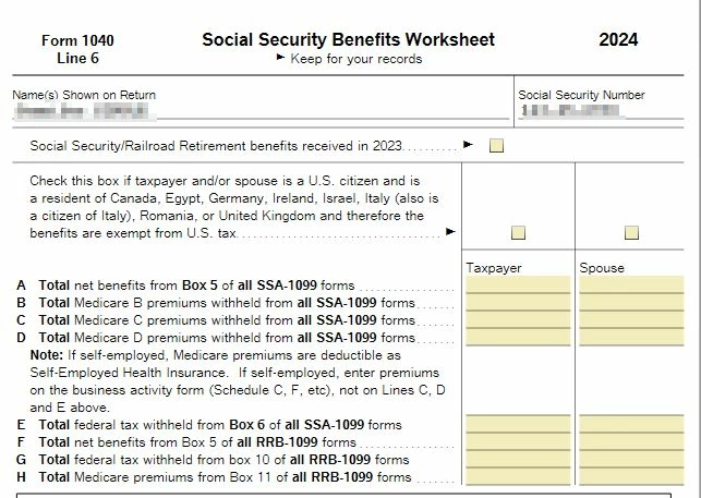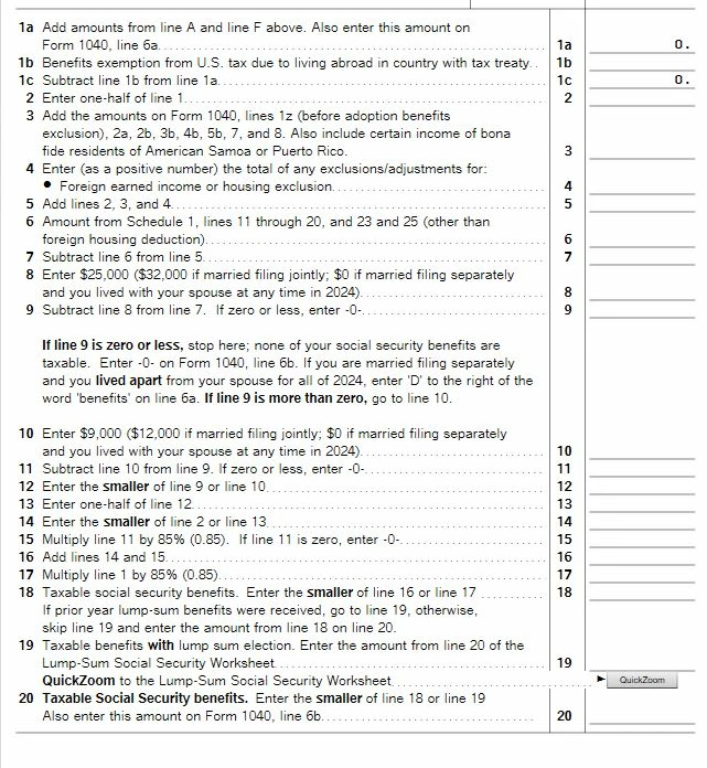 Here is the Turbo Tax SS Worksheet.  I couldn't fit it all on one screen shot so it's 2 parts.