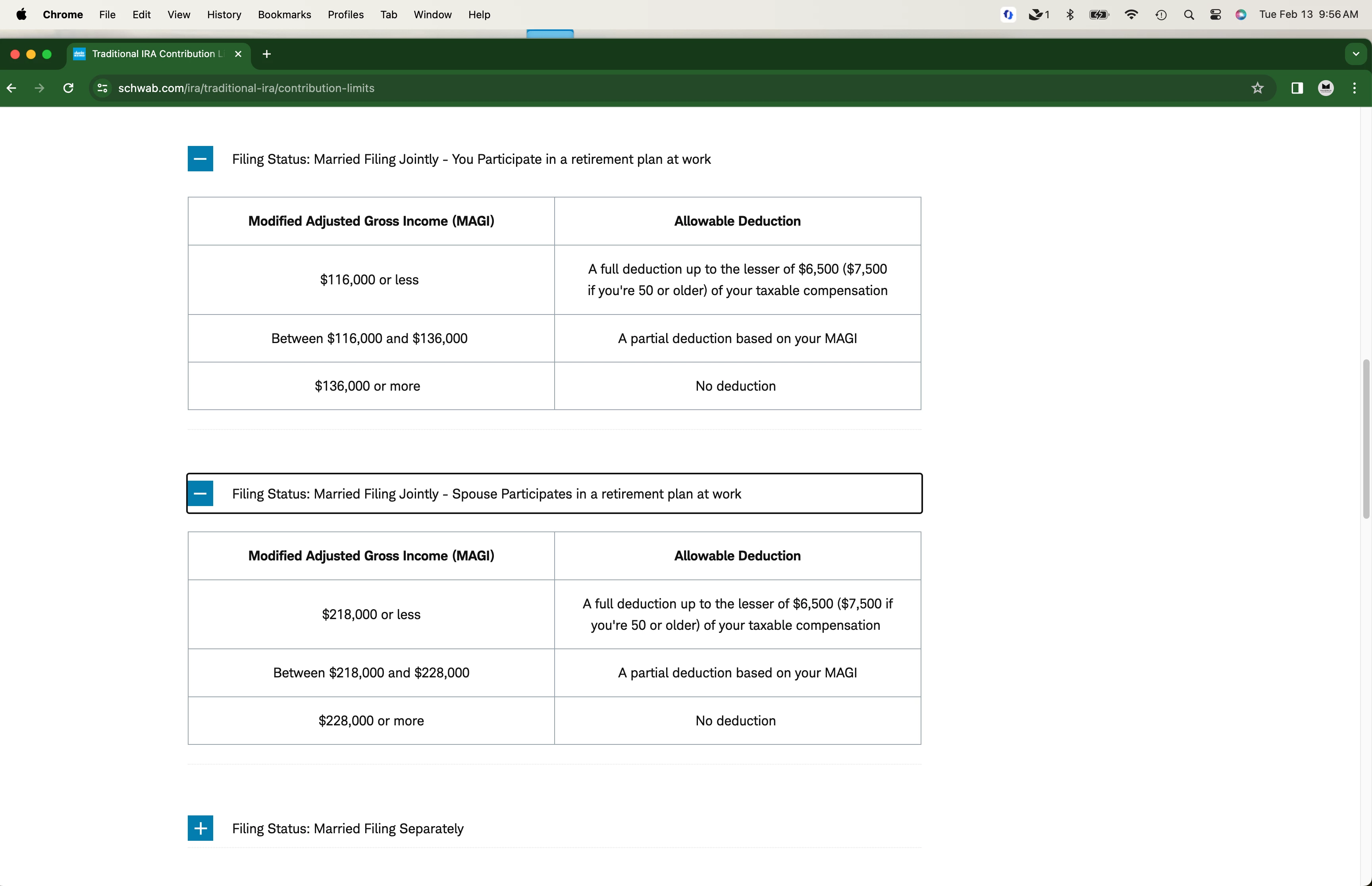 I have a partnership with my wife. She does not share in the profits, only I do. She has a full tie job where she is coved by a 401K plan at work. I contribute each year to my SEP based on my earnings. I always have done my own taxes on Turbo Tax but this yer I had an odd situation with my Partnership and took it to a tax preparer. I decided to have them prepare my personal too. Our combined income is $174,000 with her W2 and my earnings from the partnership. Our AGI is $153,700. My wife contributed $6500 to her Traditional IRA and I am now being told she cannot take contribute that much because of our income. I was also told she has to remove it or I we will pay a penalty. Can you tell me if this is correct? I do not understand why.