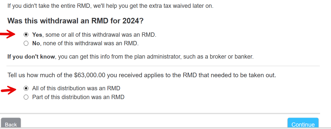 You received a 1099-R and when you enter it, the program will ask if you took the full RMD. If you did, select yes. Enter the RMD required which is normally equal to the amount you received. You can have multiple accounts and pull all RMD from one account.