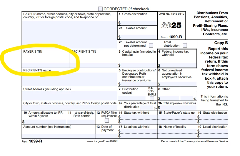 MMinaldeForum|Forum|11 months agoApril 15, 2025QuestionWhere do I find the federal id number on my 1099R from the U.S . Retired Pay?Forum|Forum|11 months agoApril 15, 20251 reply0 viewsNo text availableTurboTax Free Edition Online