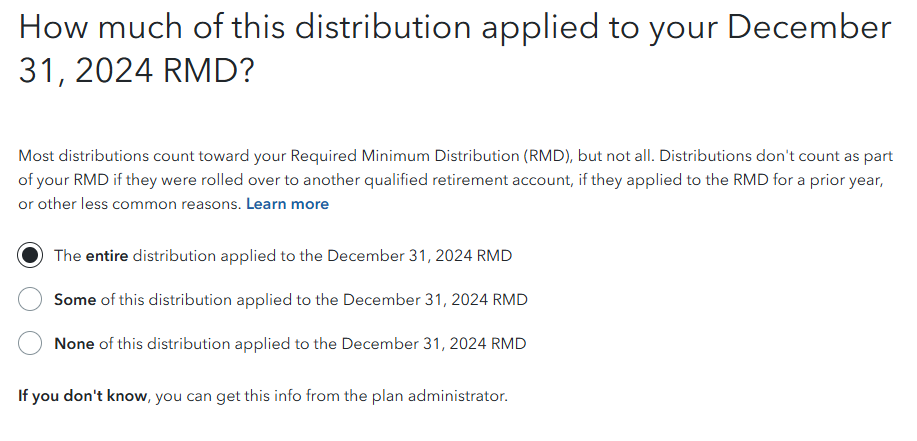 1100_10277Forum|Forum|1 year agoMarch 7, 2025QuestionWill TurboTax correct its mistake that I did not withdraw RMD?Forum|Forum|1 year agoMarch 7, 20251 reply0 viewsVanguard and my bank show that I withdrew all.