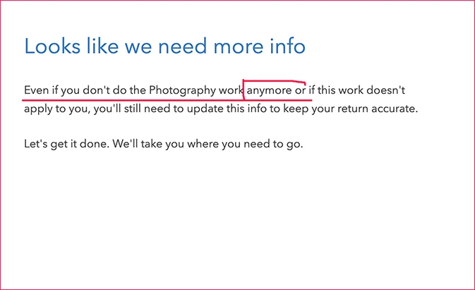 If this is what you've done (entered in other self-employed income), let us know so we can provide you steps to give us a token which allows us to better guide you through the process.