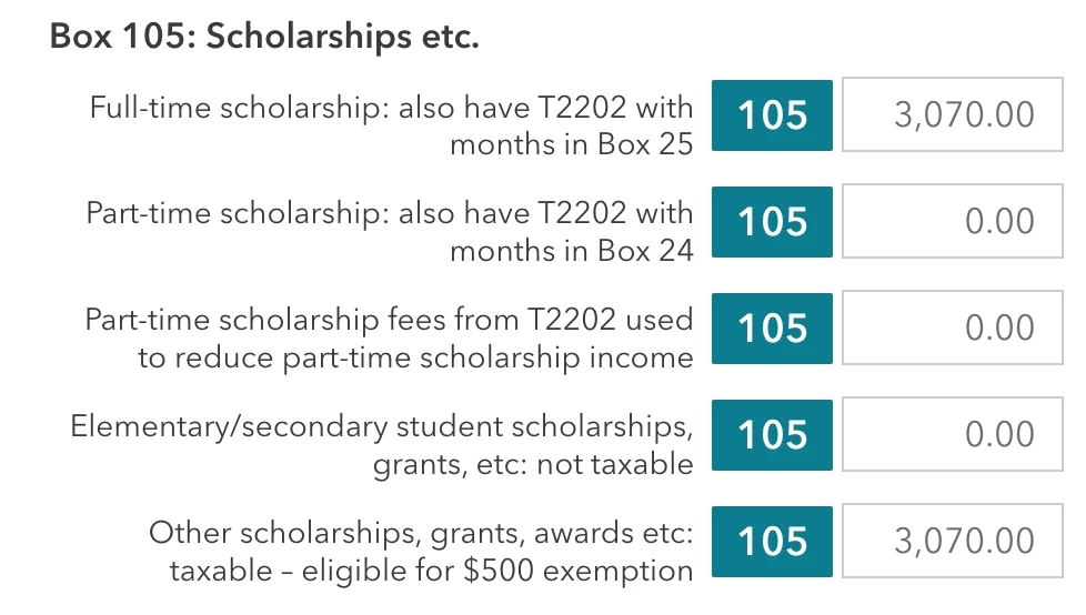 I was a full-time student for 8 months in 2022 and received a scholarship/grant from my school, I believe I do meet the criteria for the taxable bursary exemption, but the system automatically inputs the grant as a taxable income line 105 with the eligibility for $500 exemption. Do I input the grant as a full-time scholarship or as an "Other Scholarship grant" that is taxable?