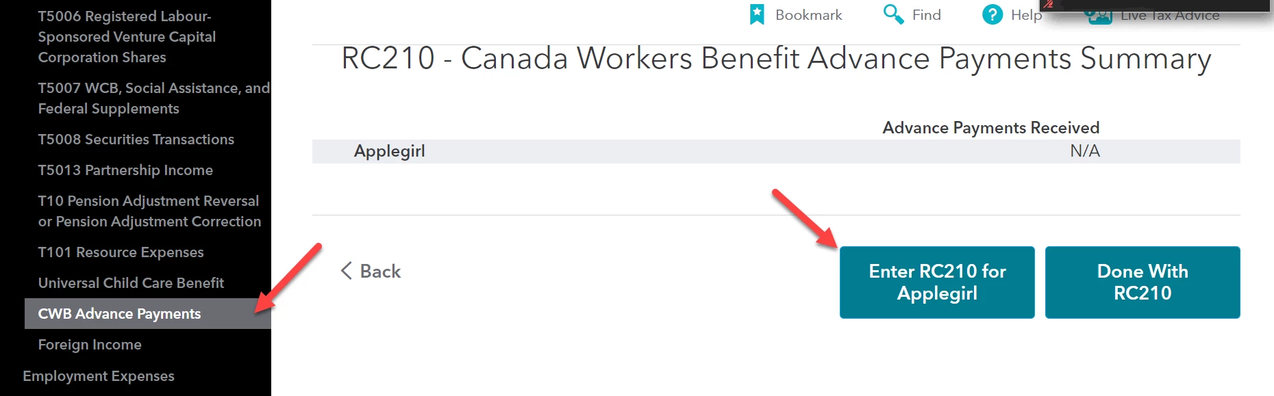RC210 - Canada Workers Benefit Advance Payments
