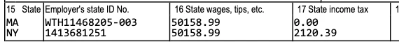 As a Massachusetts resident, all wages earned are taxable to Massachusetts. When a Massachusetts resident works out of state, those wages are still taxable to Massachusetts. Some employers will list on Form W-2, Box 16 the amount that is taxable to the state where the wages were earned and will also report the amount of wages that are taxable to Massachusetts, due to the employee's state of residency. Typically there is withholding reported for both states in this situation. This becomes an issue for residents using MA Form 1 because the amount of taxable wages is often greater than it should be. This occurs because Massachusetts residents are taxed on all wages, regardless of which state they are earned in. Because the wages were listed twice on the W-2, they are now also listed twice on MA Form 1.