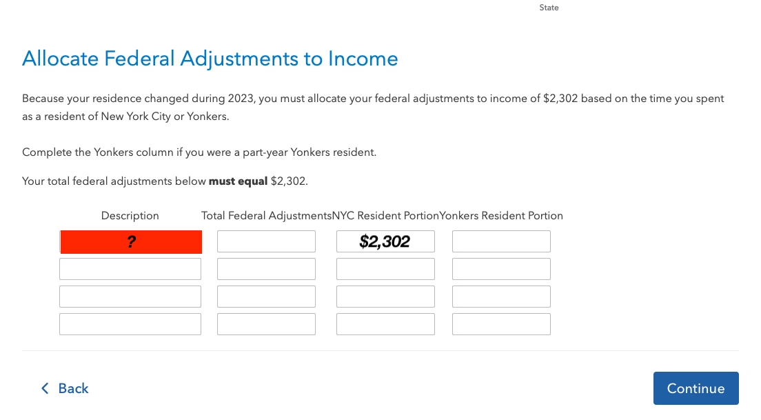 I was referring to the 'Allocate New York State Adjustments' screen. The specific number to allocate is $13,587. Could you help me figure out what numbers add up to this figure?