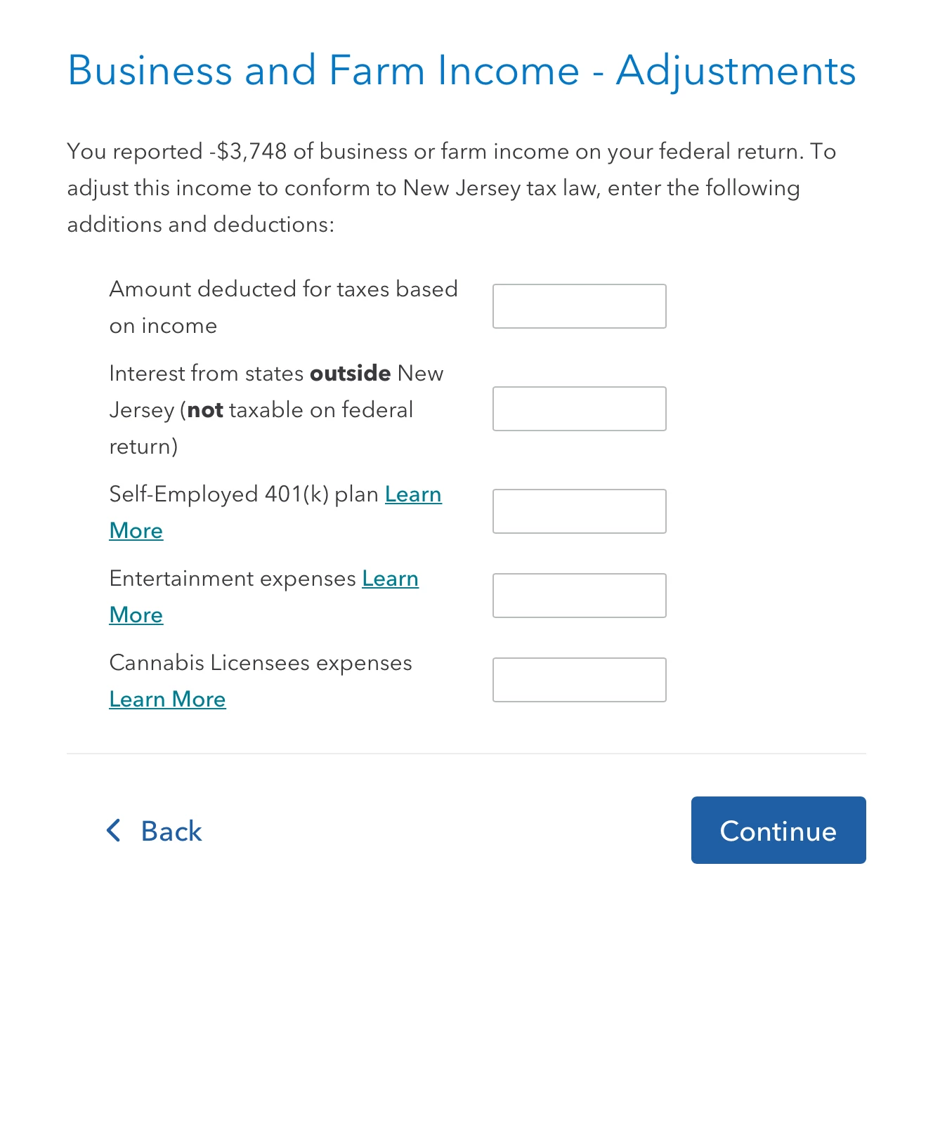 Am I supposed to include that negative 3000 again in this section that says Amount deducted for taxes based on income. I dońt understand what information goes in that first box. should i leave it blank.