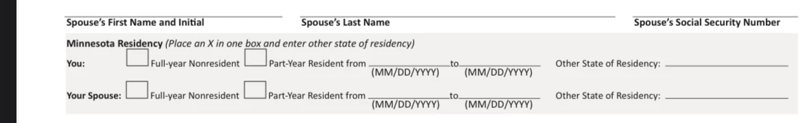 I’m getting tripped up on the residency status for MN. I don’t believe I’m domiciled in MN nor do I meet the 183 day rule. I feel my husband is likely domiciled in MN and he also meets the 183 day rule. So, I believe my husband would be a full-year MN resident while I would be a MN nonresident.