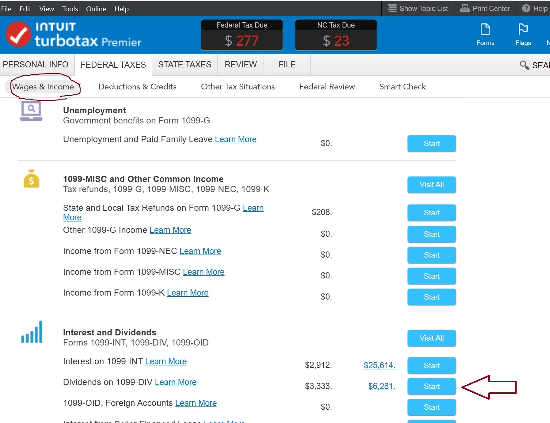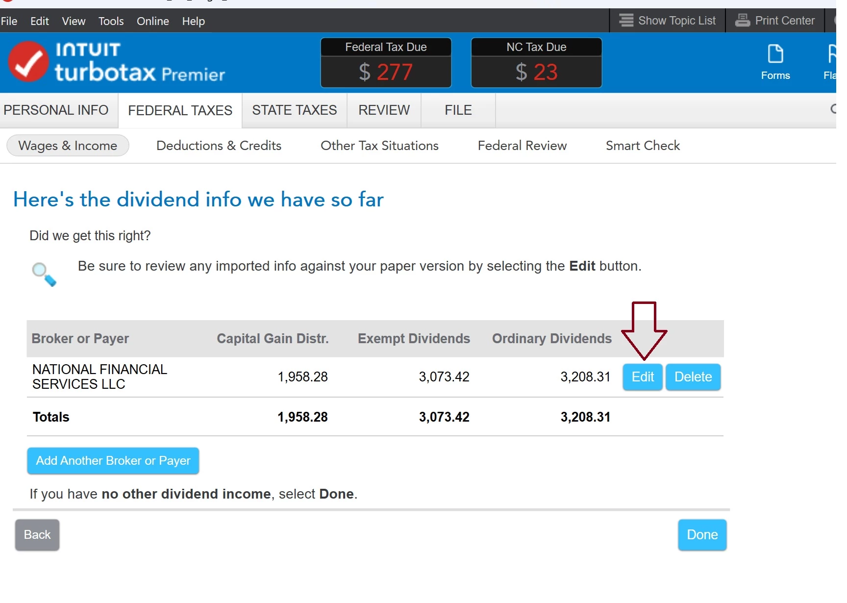 Yeah, you imported your form, and there's some handwaving post-import stuff that keeps changing as the software folks fool around with the software....but...you still could have navigated to the page I showed above, by going back to the Wages&Income page menu, going down to the 1099-DIV entry area, and going in and editing that 1099-DIV form. Then just stepping thru the pages for that form to see the allocation page.