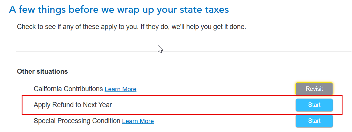 I recommend going through the state interview screens again. If you have a state refund, you will typically be asked whether you want to apply the refund to 2025 in Other situations.