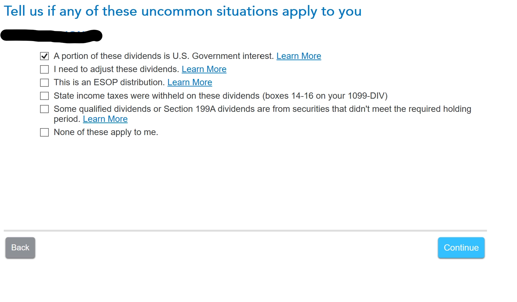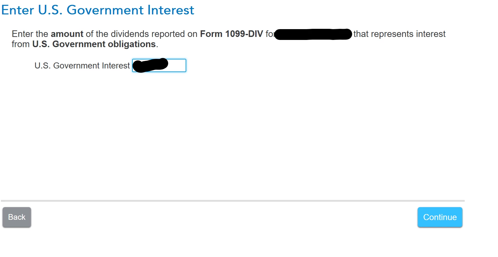 2) When entering a 1099-DIV with box 1a $$ on it, and IF a portion of those $$ came from US Bond interest/dividends, you just enter all of the 1099-DIV as-is, then continue to the pages that follow. On one of the following pages the is a series of checkboxes....and you check the one for "A portion of these dividends is US Government interest". then on one of the pages that follows you will enter the $$ amount you calculated that came from US Govt bonds....and then those $$ automatically show up on the NC D400 Schd S, and included in the subtractions from NC income.