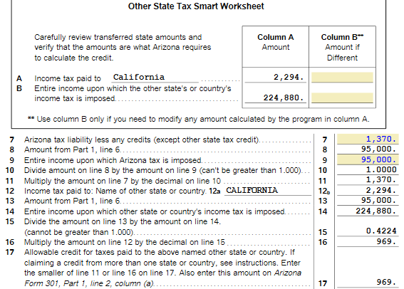 Generally, you would claim the credit on your resident state for taxes paid to your nonresident state. However, CA and AZ are an exception to the rule.