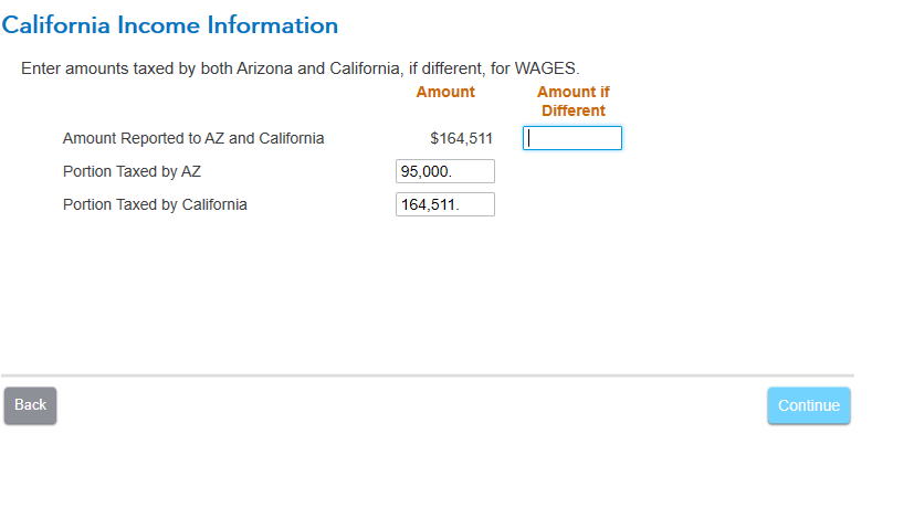 I owe $2 in tax to the state of AZ. I am a resident of CA. TurboTax is prompting me to fill out AZ Form 309. Where do I find the amount subject to tax in both states?