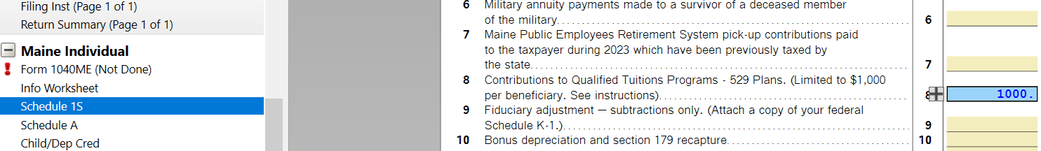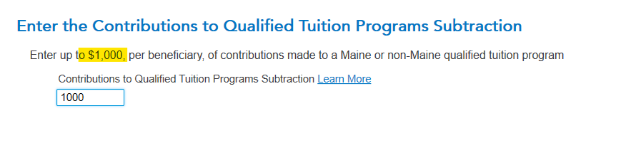 • Subtraction for contributions to 529 Plans. 36 M.R.S. § 5122(2)(Y).