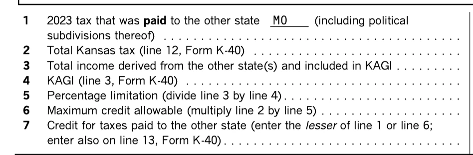 Kansas K-40 Line 13 - credit for taxes paid to other states