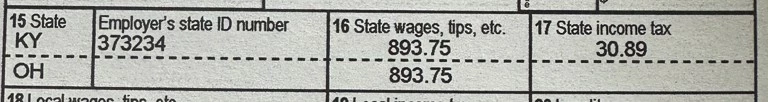 TurboTax is asking for an employer ID number for the Ohio line.  Is it the same for both states?  Does this mean they paid Kentucky instead of Ohio, where I live? My Indiana one is the same.